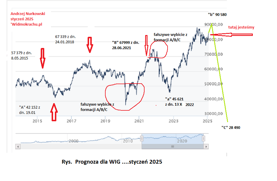 Jeśli ktoś uważa że nowy prezydent Donald Tramp coś zmieni , to może się bardzo pomylić. To co zostało zepsute w gospodarce na przestrzeni ostatnich 50 lat nie da się naprawić i Tramp tez sobie z tym nie poradzi. Pomimo tego że obiecuje odbudowę gospodarki USA i że uczyni ja ponownie wielką. Notowania giełdowe to wszystko zweryfikują i jeśli WIG pójdzie droga którą zaznaczyłem na poniższym rysunku będzie to znaczyło że to o czym pisze ma sens.